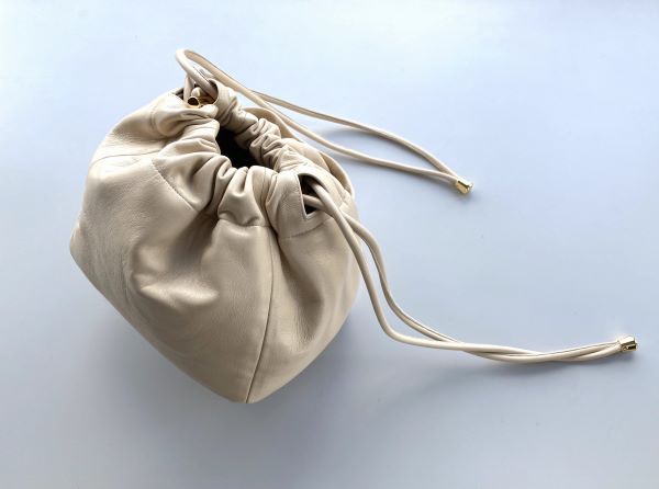付属のストラップを持ち手にすればハンドバッグに。リボン結びにしたストリングがアクセントにも。