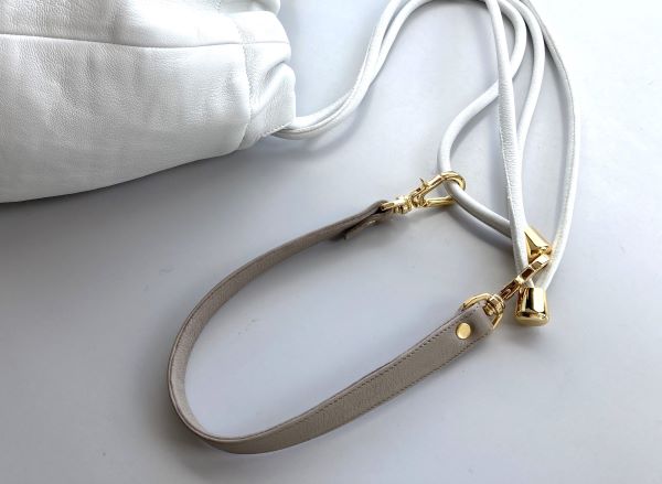 SWINGING BAG用にご用意した革は全部で12色。黒や茶などの定番カラーからペールピンクやホワイトのような柔らかな色合いまで。是非お好みの一色をお選びください。