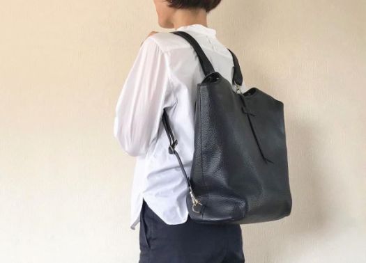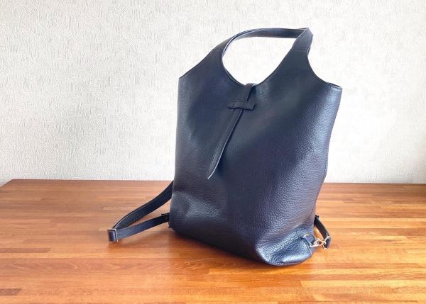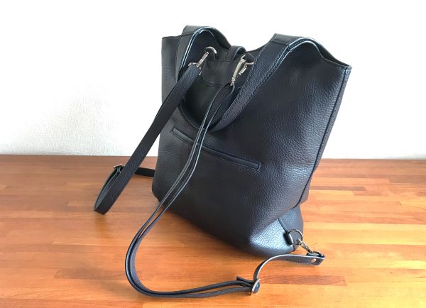 高さ約38cm×横約34cm×マチ約18cm、持ち手約46cmのバックパックになるトートバッグです。