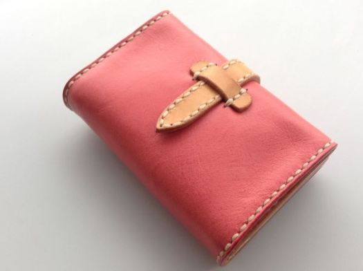 留め具を付けたタイプもご用意いたします。写真のようなベルトの他に、カードケースの内側にスナップボタンやマグネットフックなどの金具の取り付けもお受けいたします。ご希望の留め方がありましたら是非ご相談ください。※留め具の仕様により価格が異なります