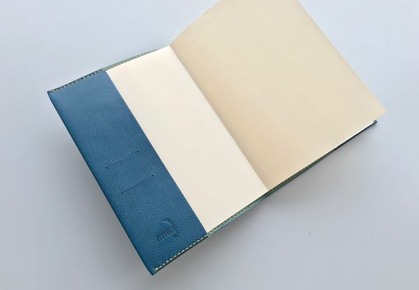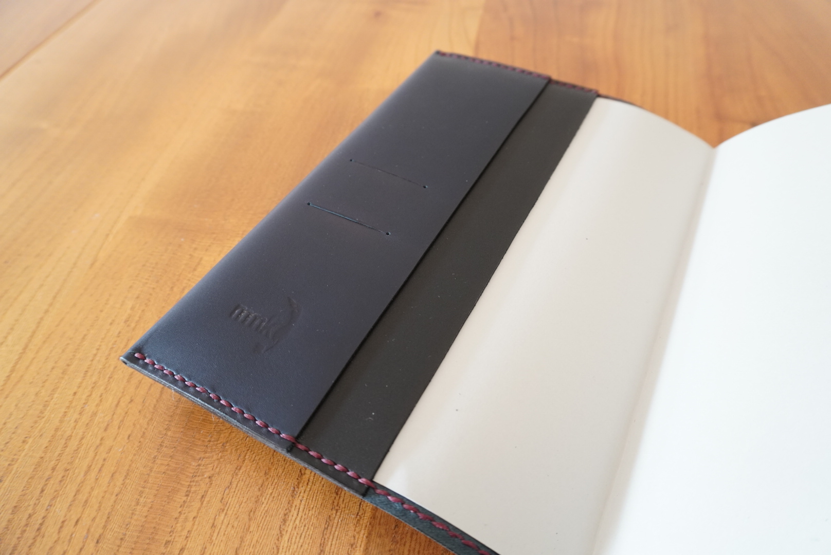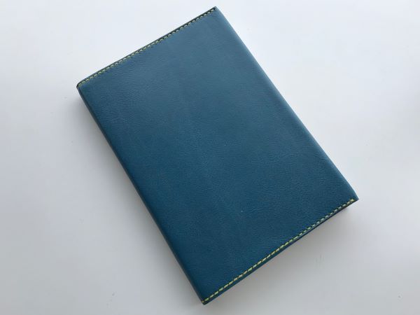 一枚革で手帳や本をくるむように仕立てた革カバーです。長期間の仕様でしっかりとなじむよう、ご指定の冊子を収めたときにぴったりずれないサイズでおつくりします。