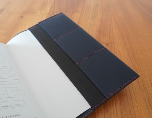 見返し部分にはスリットを。栞を通したり、クリップを挟むときに便利です。スリットはご希望の位置にお好みの数をお入れします。