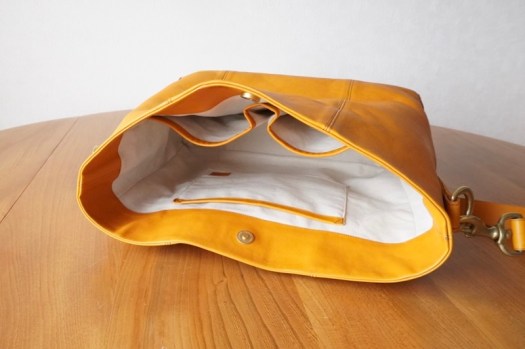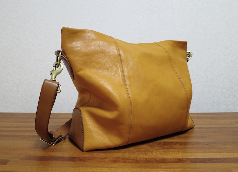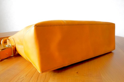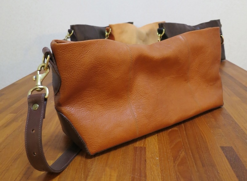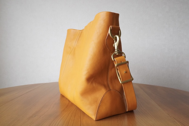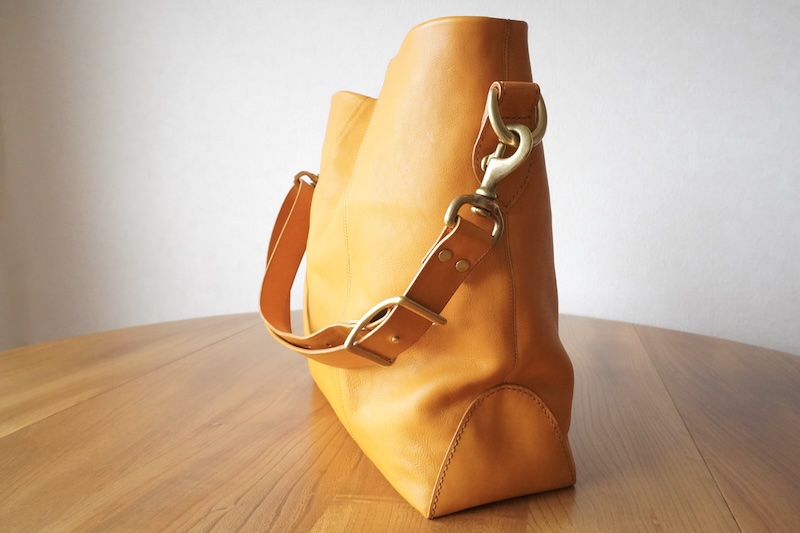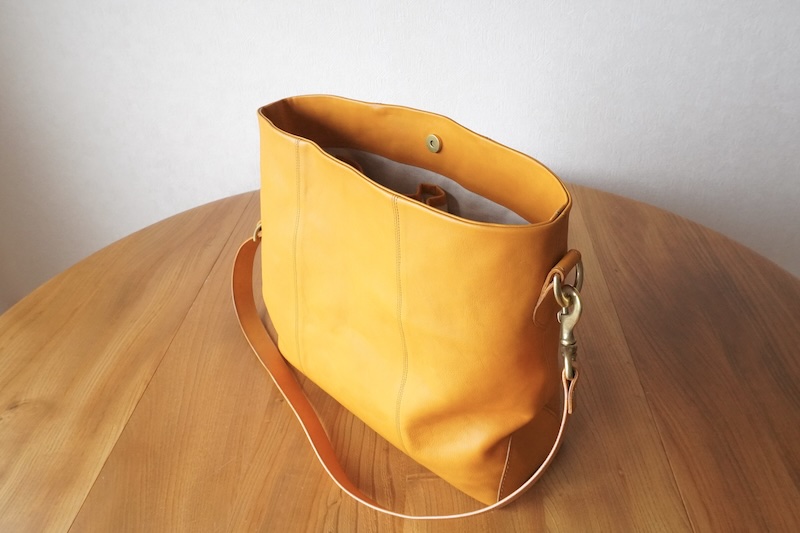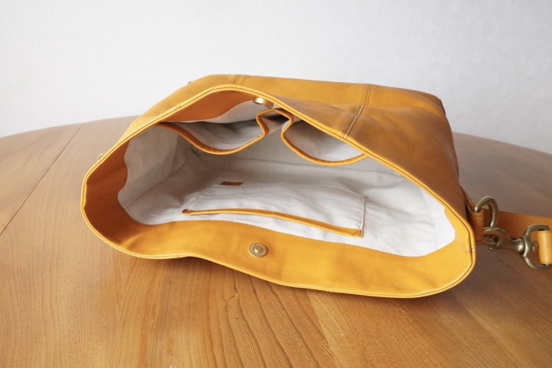 鞄袋はミシンで袋縫いにし、その表情の柔らかさを保ちながらも強度を高めています。