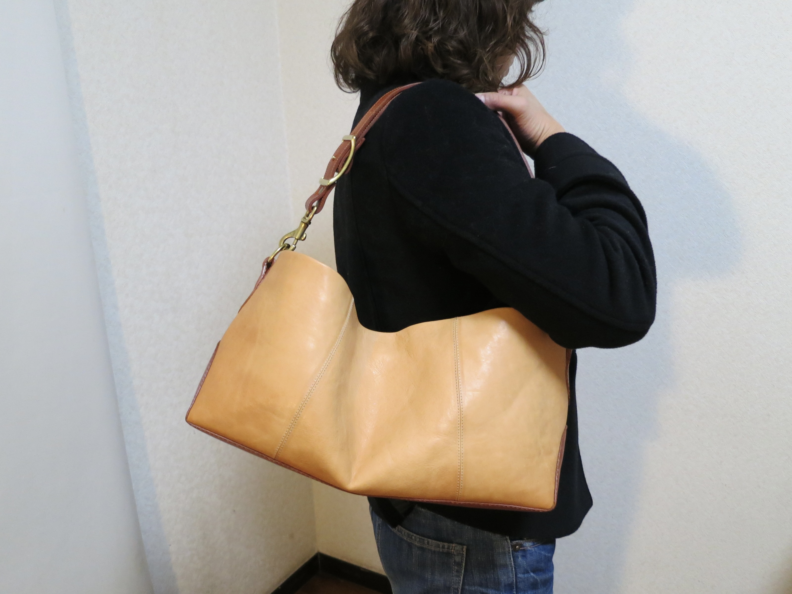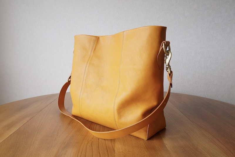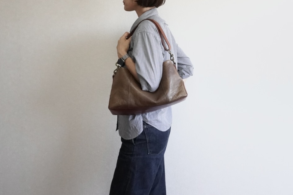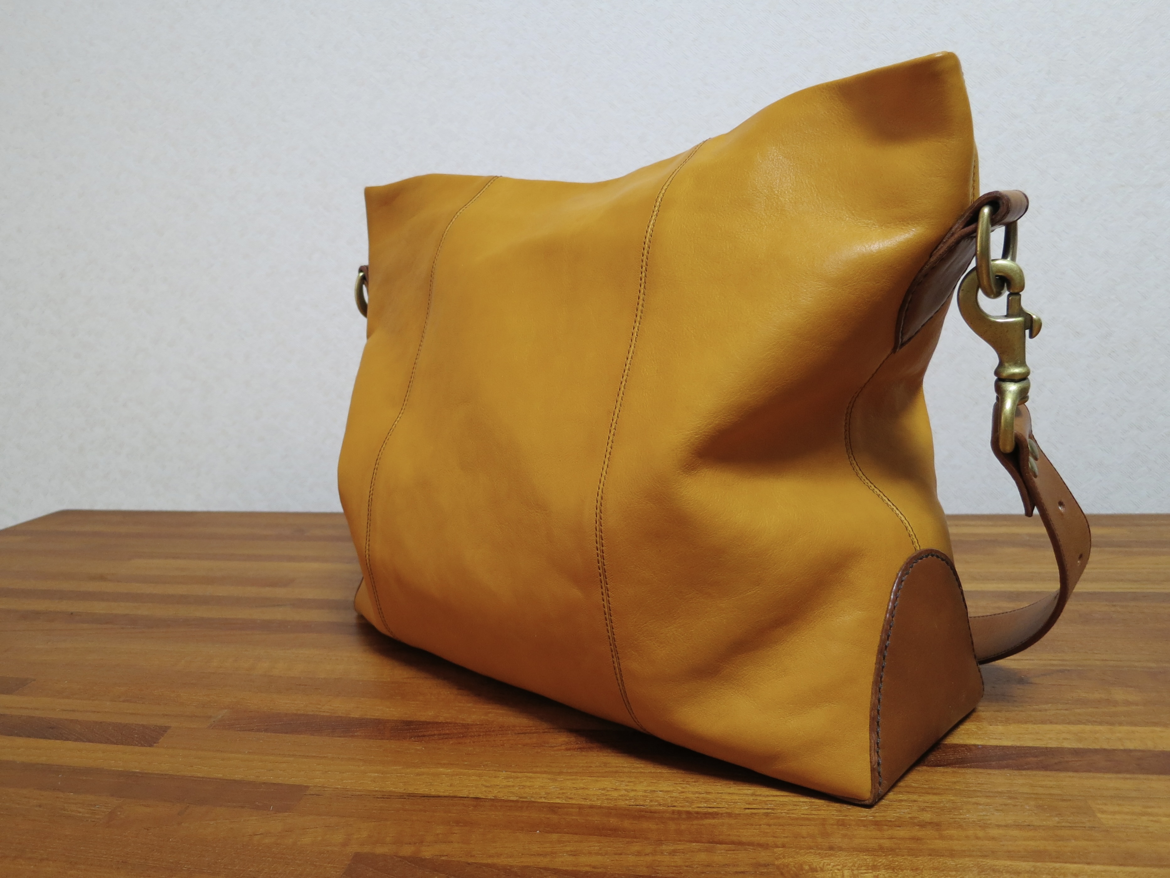 鞄袋はミシンで袋縫いにし、その表情の柔らかさを保ちながらも強度を高めています。