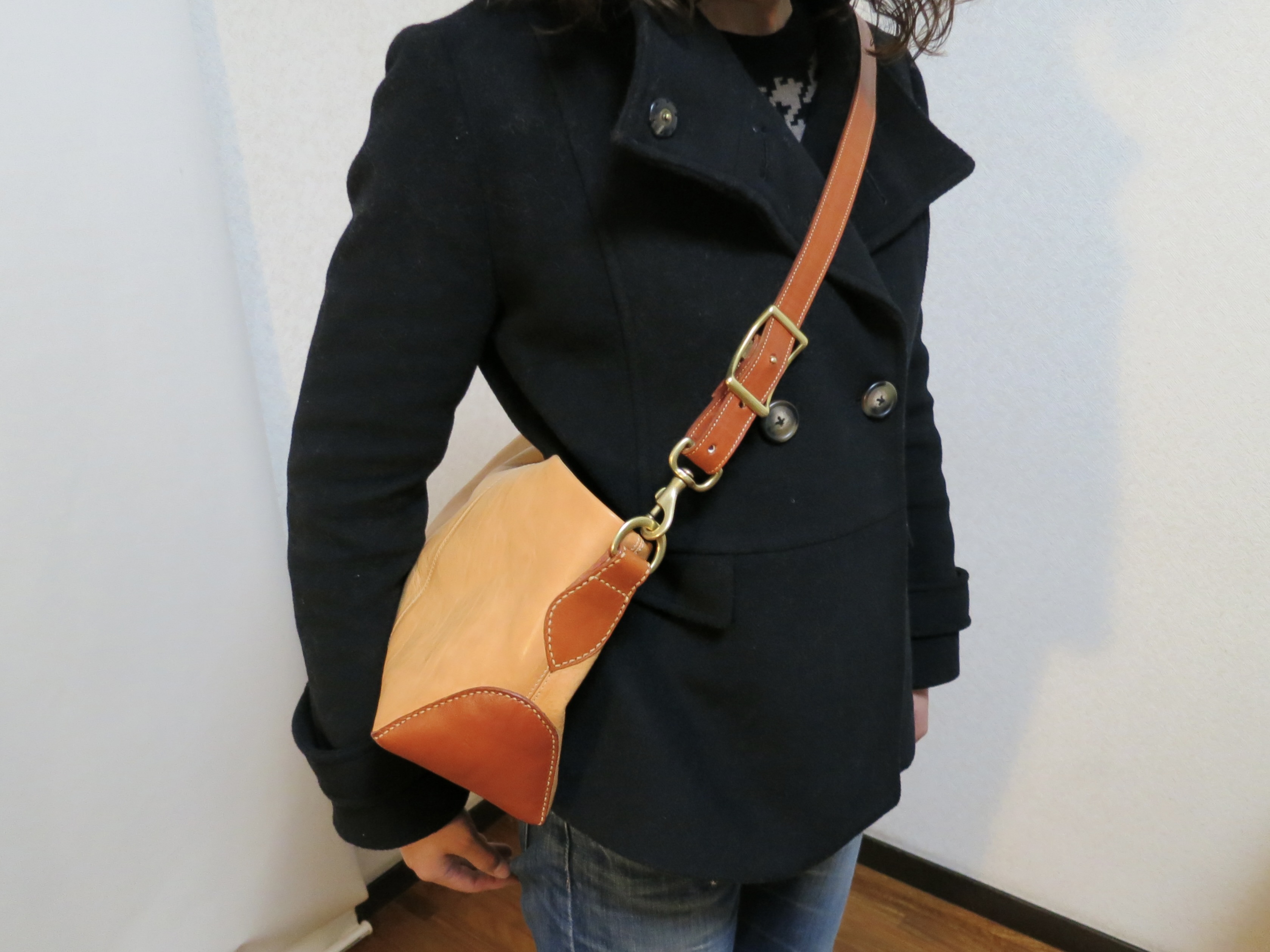 斜めがけにする時を基準にしたり、ワンショルダー持ちをするときに合わせたり。