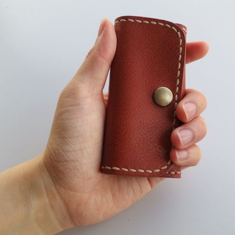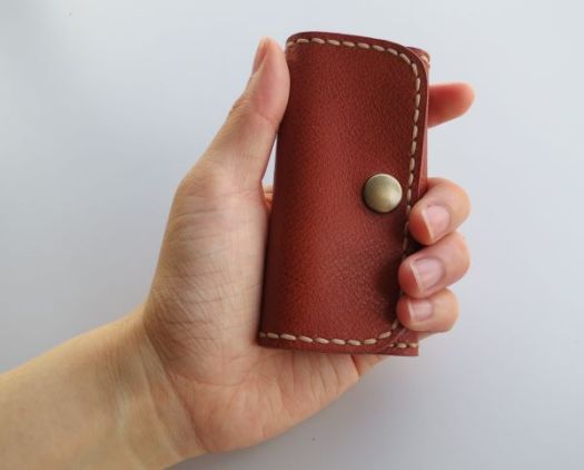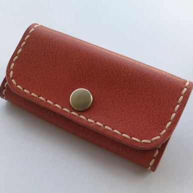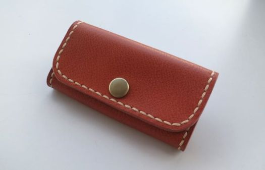 お好きな色の糸で手縫をし、最後に革をワックスで磨いていただきます。