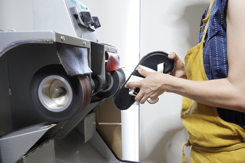 はみ出た底材を削っていきます。画像はグラインダーという機材で削っている様子。グラインダーである程度削った後に手削りをします。(機械の作業が苦手な方は講師が代行しますのでご安心ください)