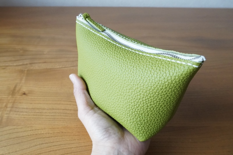 マチ幅をしっかりとり、一枚革の袋仕立てでつくるため、コンパクトながらもたっぷり入ります。