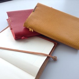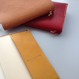 イタリア製タンニンなめしのシボ革を使って文庫サイズのブックカバーを作ります。裁断してある革に穴をあけ、お好きな色の糸で手縫をし、最後に革をワックスで磨いていただきます。