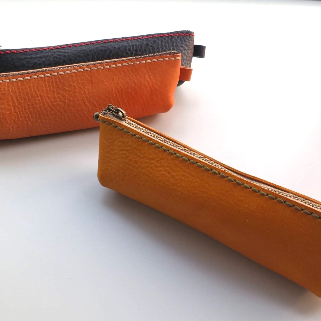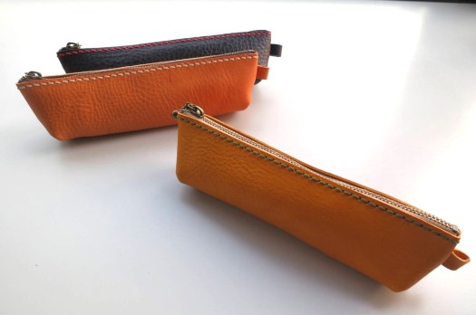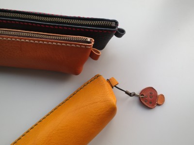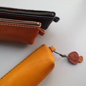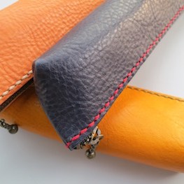 イタリア製タンニンなめし革を使ってペンケースを作ります。裁断してある革に穴をあけ、お好きな色の糸で手縫をします。