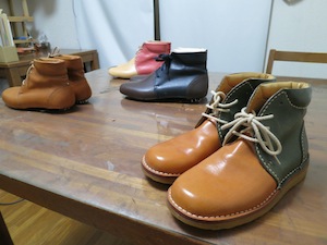 手前のは以前よりサンプルとしてご用意がある一足。作ったのは5年以上前かな。