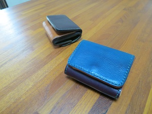 今日は前回に引き続き試作中の革小物のご案内です。今回は三折財布です。