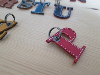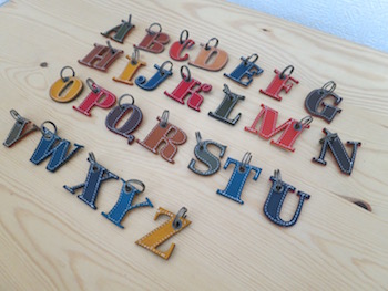 アルファベットチャーム。各文字一つずつ、お色は様々ご用意しています。