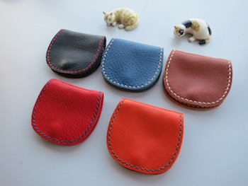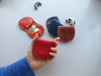 イタリア製タンニンなめしのシボ革を使ってコインケースを作ります。