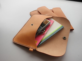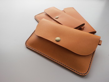 イタリア製のタンニンなめしのヌメ革をつかって革ポーチを作ります。