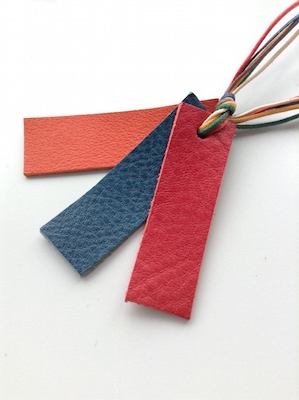 お選びいただける革は3色。手前から「赤」「青」「オレンジ」。