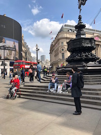 最後は観光客山盛、のロンドンど真ん中に立つエロスの像の前にて。