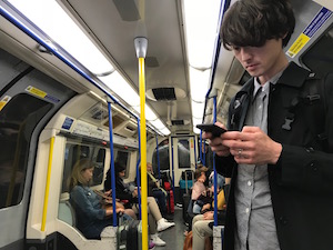 到着後すぐに乗った地下鉄にて。