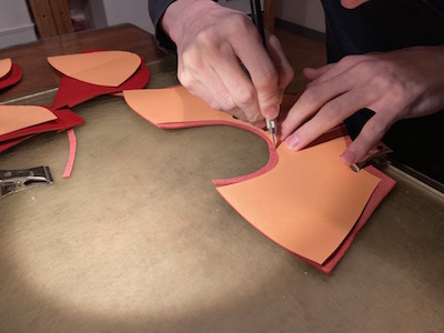 まずは一足、完成形を作っていきます。早速ですが裁断に入りました。