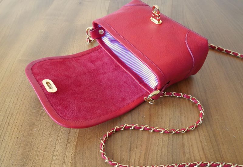 チェーンをフラップの下にループさせてから蓋を閉じると外側にチェーン2本が外に出せます。