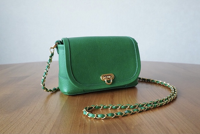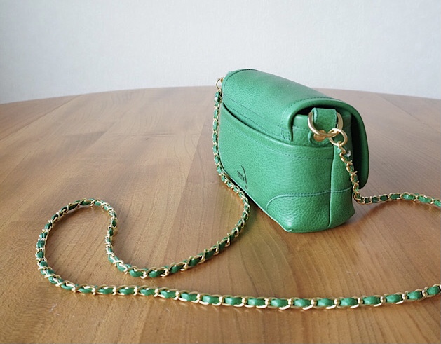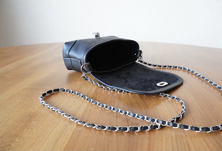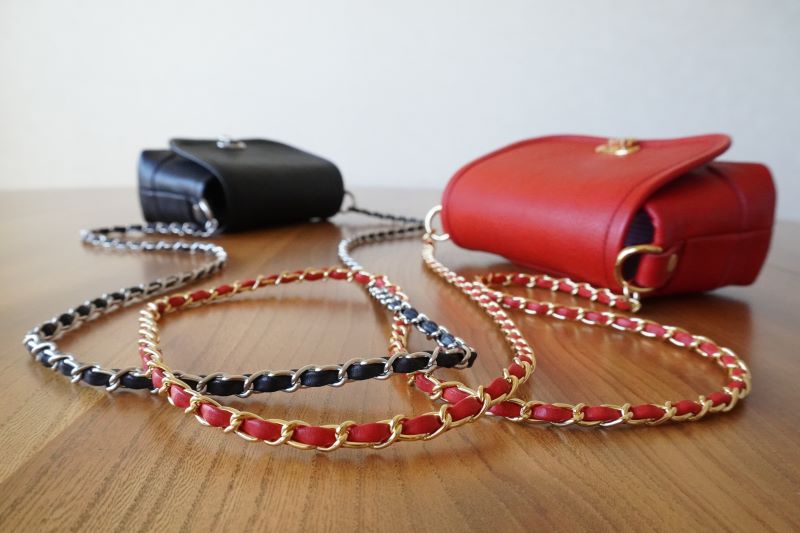 斜め掛けストラップは6mm幅の細チェーンを取り付けました。