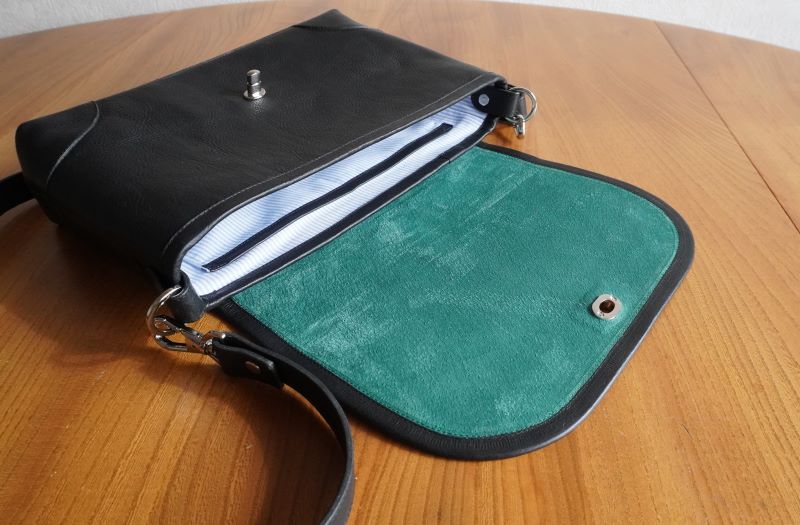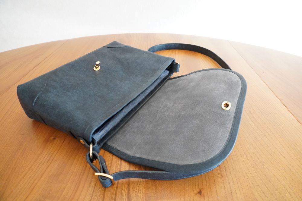 フラップの裏地には手触りの良い起毛革を取りつけています。多色ご用意がある中からお好みのものをお選びいただきます。
