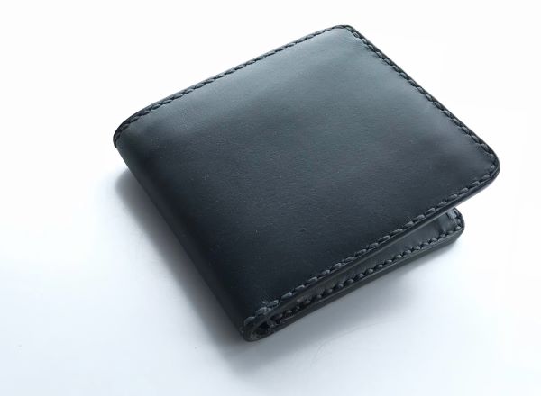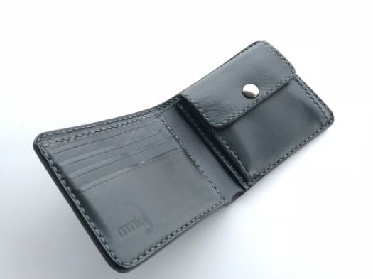 折りたたんだ時に約10㎝×約9㎝ほどのサイズになる二つ折り財布です。