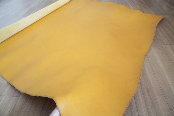 先日入荷したのはからし色のタンニンなめし革。使い込むほどに明るめのキャメルになっていきます。