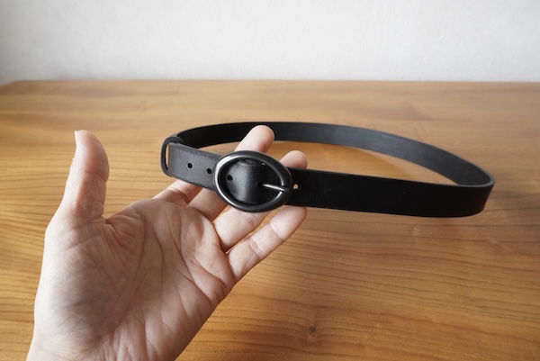 取り外せるがゆえ、ベルトを取る時にシュッと一緒に取れちゃうときがあるのがネックですが・・余ったベルト先をホールドする場所は好みに合わせられるので、例えばワンピースや長めの丈のシャツを着てウエストマークとしてベルトを付ける時にあってよかったなのお役立ちパーツになるんじゃないかなとも。