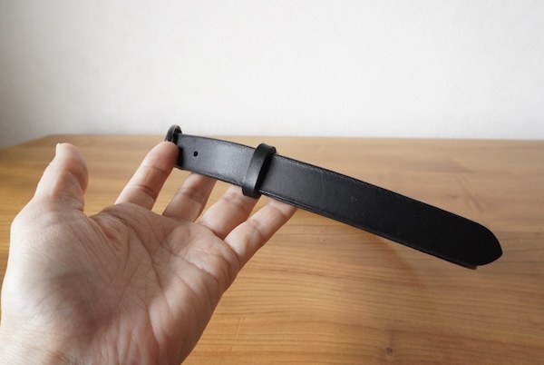 裁断したてでまだまだ革に強いハリコシがあってバックルへの通しづらさを感じはしますが、現時点ではなかなかの好感触です。