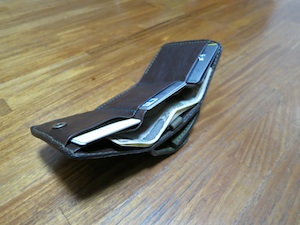 頂いたときからその構造をヒントに三つ折り財布が作れないだろうかとずっと