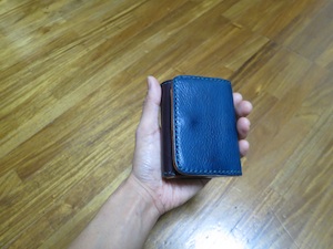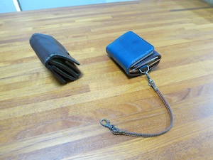 今日は前回に引き続き試作中の革小物のご案内です。今回は三折財布です。