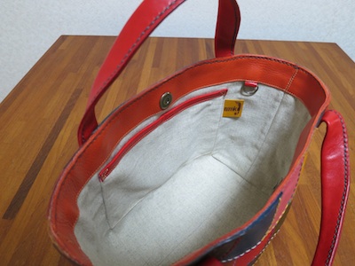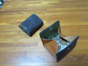 前回のキーケースと同じ、小銭入れが独立しつつフタが一枚の革で繋がっている