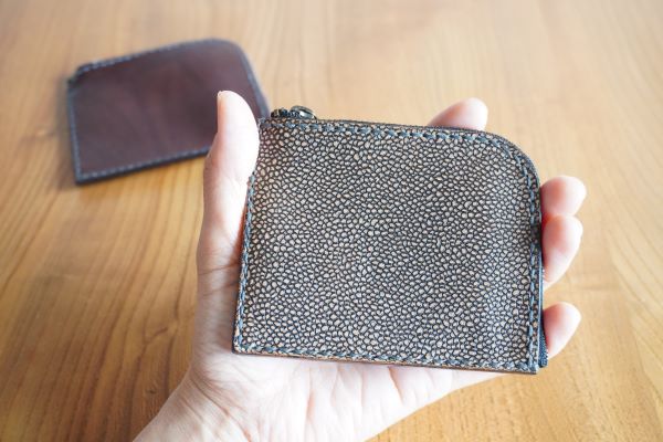 L字にファスナーを開閉するフラットなお財布です。スリムな設計なのでデニムなどのポケットにもすっきりと収まるサイズ感です。