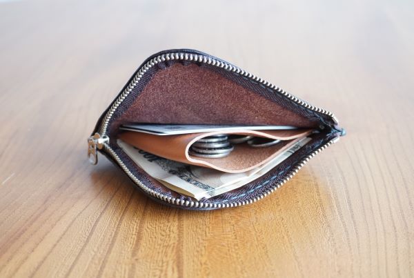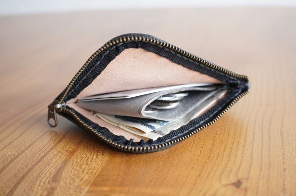 ・お札は三つ折りに入れればファスナーの布テープにかからず収まります。二つ折りはエレメントに挟まってしまう可能性があります。