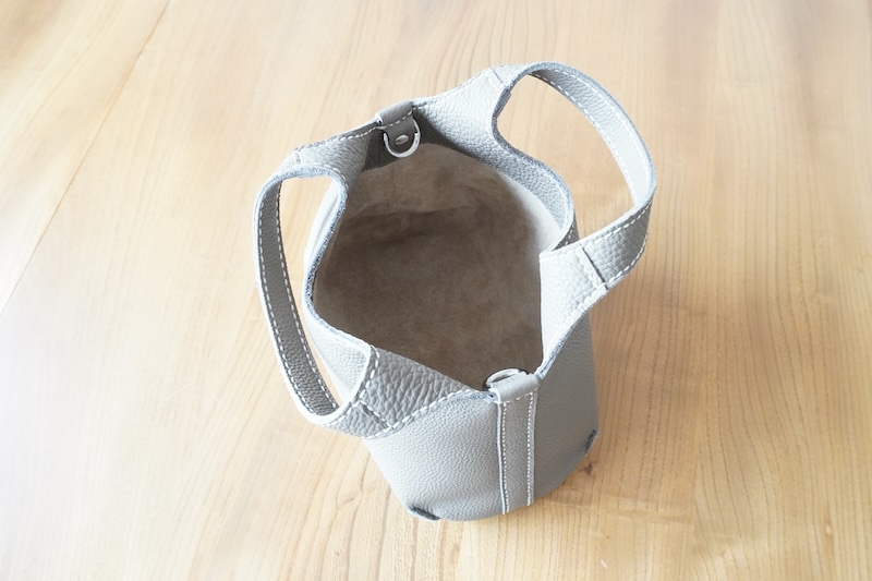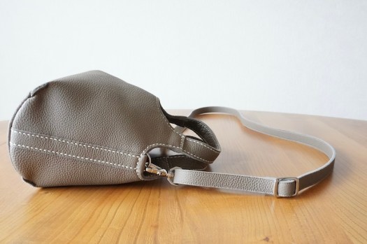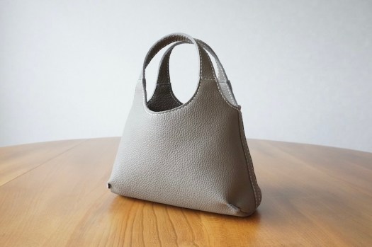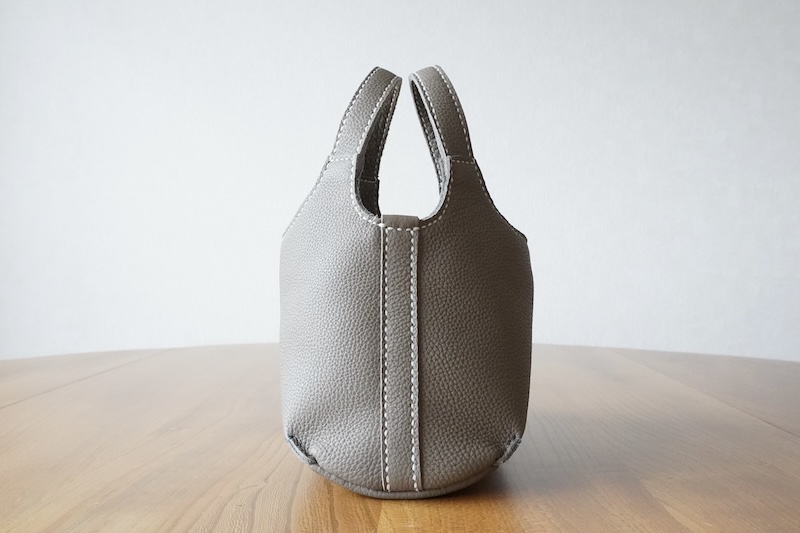 小さいながらはっきりとした表情を出すためにバッグ脇にはステイ革を縫い込みしっかり形作っています。