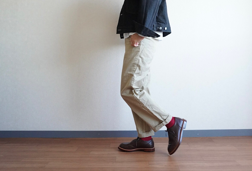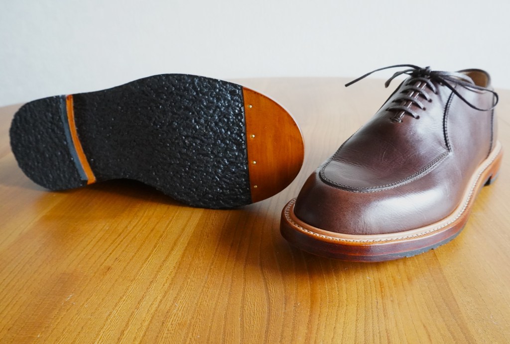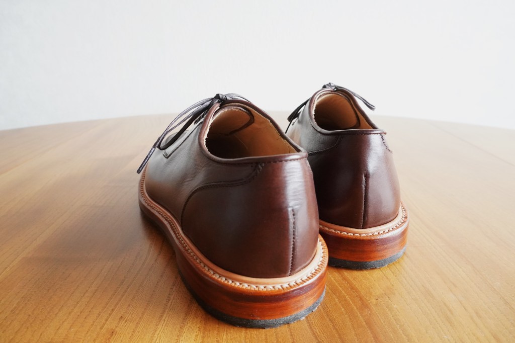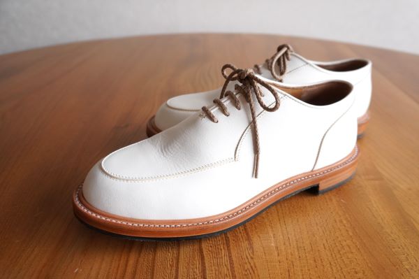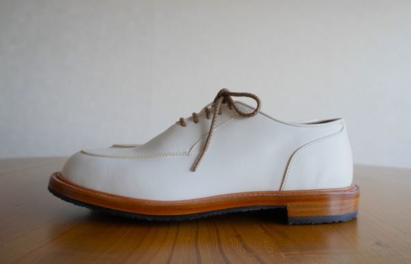 Uチップはローファーのグリニッジと同じ仕様のミシン仕上げですっきりとした表情に仕上げました。