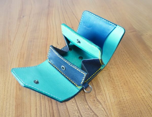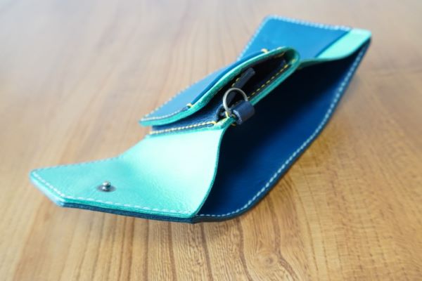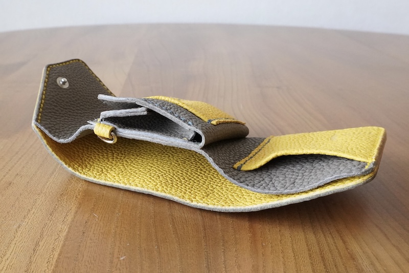 カード入れの背面に札入れの構造です。コインケースの一部に小さめの金具を取り付けてあります。(金具の取り付けなしも可)