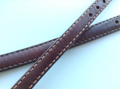縫い合わせる際に革の革の間に厚地の革の芯材を入れ込み強度を高めています。