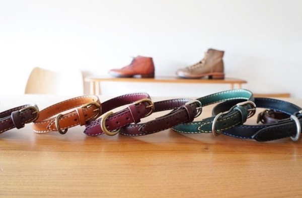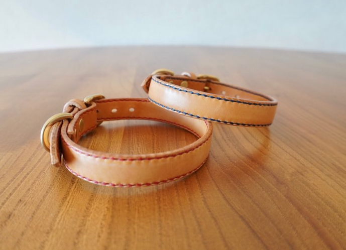 上質なイタリア製タンニン鞣しを用いてて手縫いで仕上げる犬の首輪です。