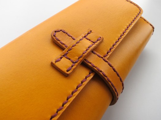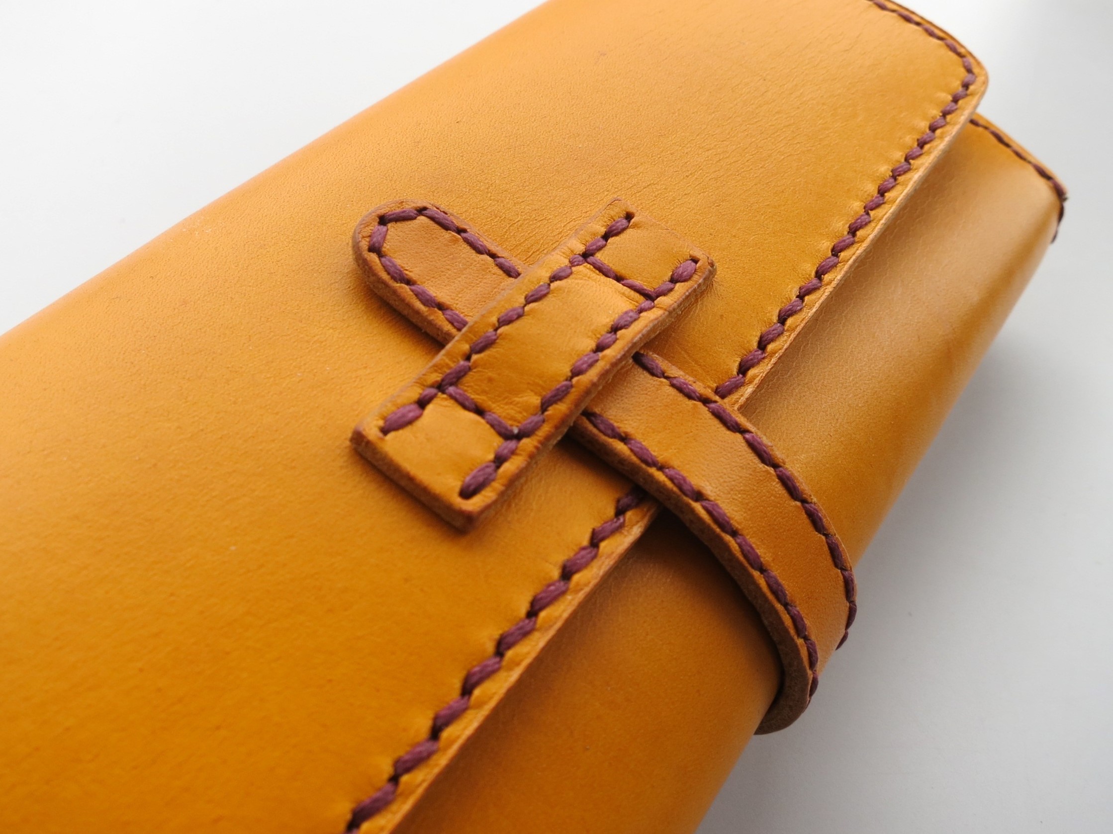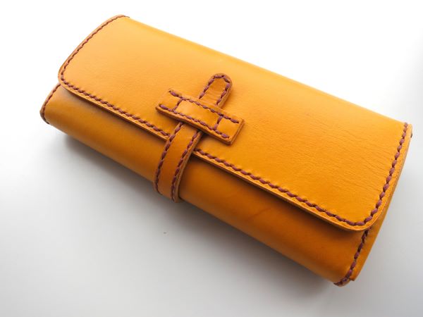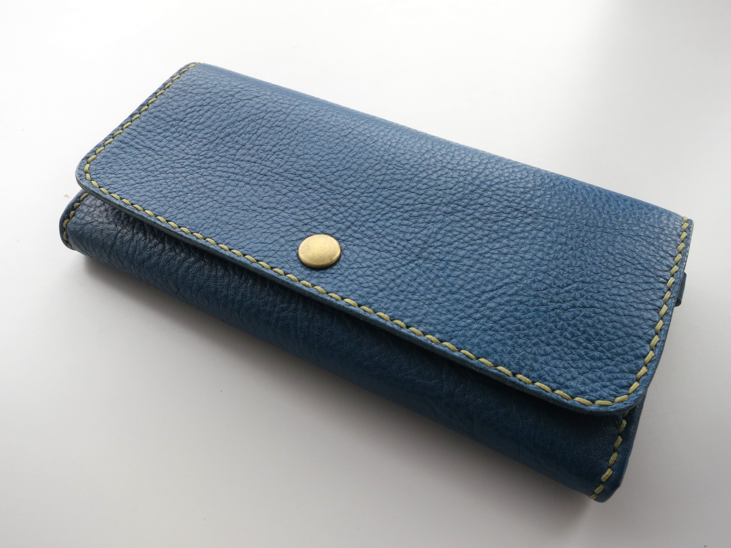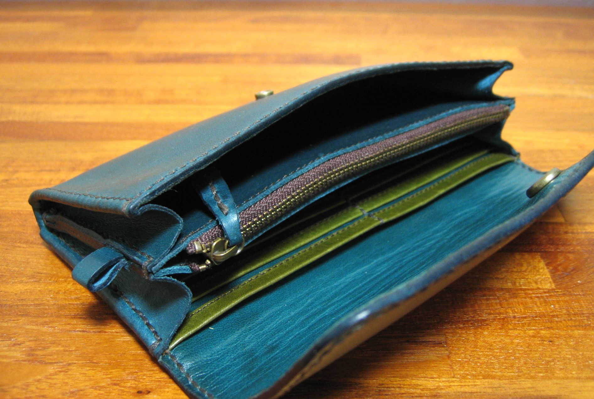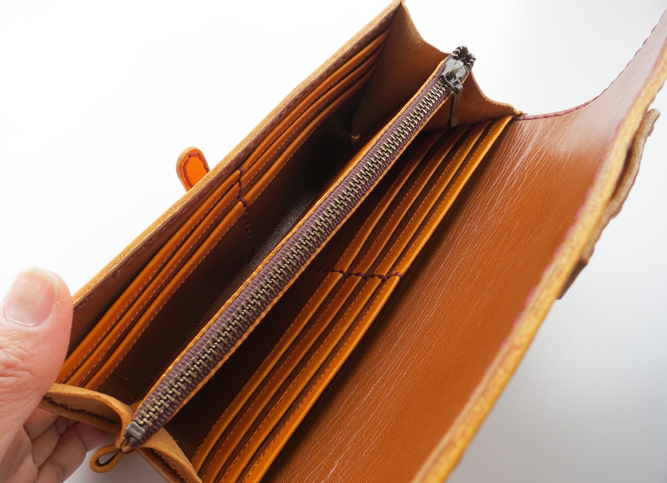 シンプルな長財布です。お財布の中央にファスナータイプの小銭入れを付けています。カード入れはお好みで最大12枚入れられるようにお作りします。